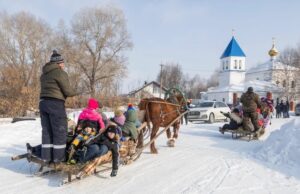 Но особенная радость случилась, когда под конец праздника к храму подкатили сани с лошадками. Ребятишек было столько, что они едва уместились в двух повозках. Накатали их в этот день до румяных щек и блеска в глазах. Смех и веселье в честь проводов Зимы накануне Великого поста, завершили святочные дни радости в честь Рождества и Крещения Христова.