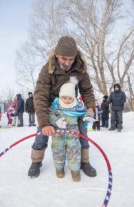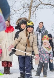 Организацию проводов Масленицы по традиции и по благословению настоятеля храма протоиерея Игоря Елизарьева взяли на себя руководитель Воскресной школы Татьяна Омельченко с помощниками и супругом Дмитрием. Растопили привычный уже самовар, наварили разных каш в казанах, плюс ко всему подавали рыбу с пирогами и блинами. А после вкусной трапезы начался праздник: конкурсы, веселые старты, семейные забеги с обручами, «ватрушками», палками и прочими предметами, которые только можно было приспособить для соревнований.